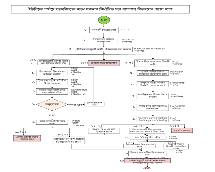 | ২ | ইউনিয়ন পর্যায়ে হতদরিদ্রের মাঝে সরকার নির্ধারিত দরে খাদ্য শস্য বিতরনের প্রসেস ম্যাপ | দেখুন | |